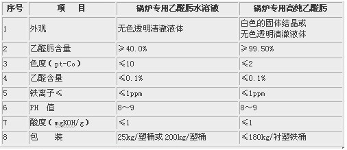 The product is divided into acetaldehyde oxime solution for use in boiler and high-purity acetaldehyde oxime for use in boiler two specifications: